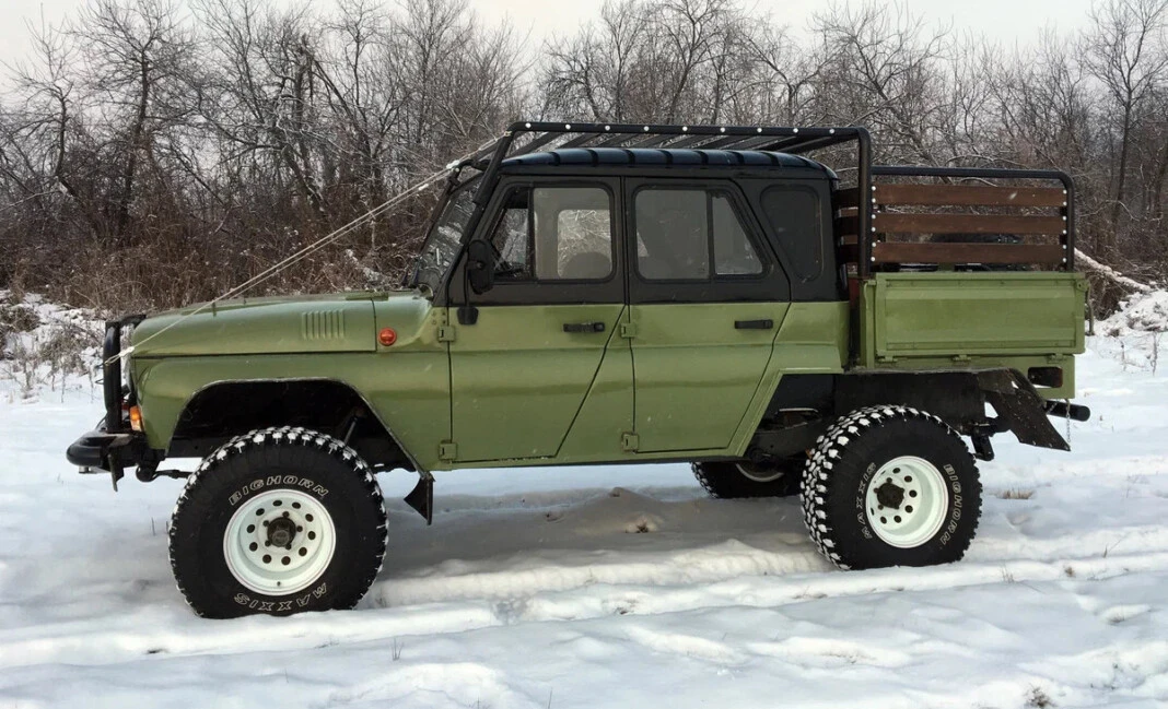 В техническом плане автомобиль также претерпел изменения. Вместо штатного мотора под капотом прописался карбюраторный двигатель УМЗ-4178 объемом 2,5 литра. Отметим, что этот силовой агрегат выдает 92 лошадиные силы и ценится джиперами за простоту и хорошую тягу на низах. Также машина оснащена гидроусилителем руля, что значительно облегчает управление на бездорожье.