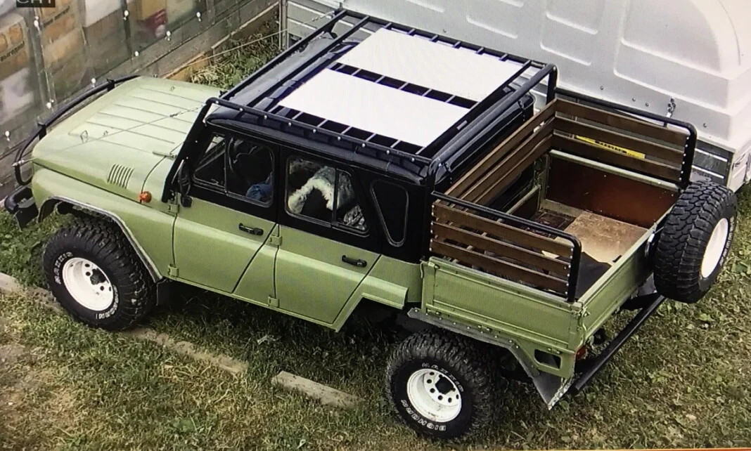 Чтобы реализовать задумку и удлинить колесную базу без кустарной резки и сварки, энтузиаст использовал заводское решение. Так, в качестве несущей основы была выбрана рама от редкой удлиненной модификации УАЗ-3159 «Барс». На это шасси мастер установил стандартную кабину от «Хантера», а освободившееся сзади пространство использовал для монтажа грузовой платформы с высокими бортами. Для увеличения полезного объема на крыше дополнительно разместился экспедиционный багажник.
