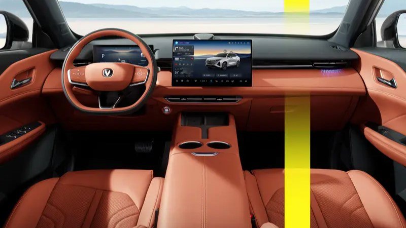 Главное изменение внутри Changan Uni-Z в гибридном исполнении на 2026 модельный год связано не с экранами или отделкой, а с компоновкой: рычаг управления трансмиссией больше не занимает место на центральном тоннеле. Его перенесли на рулевую колонку, тем самым освободив пространство между передними креслами и сделав переднюю часть салона визуально «чище».