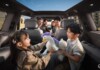Второй ряд просторный, с отдельным климат-контролем и столиками, но без солнцезащитных шторок и электроприводов сидений. Третий ряд рассчитан скорее на короткие поездки, но вентиляция присутствует. Багажник открывается оригинально — с помощью проецируемой на землю голограммы-кнопки.