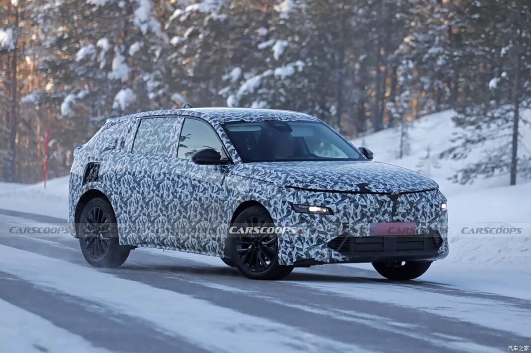 Силуэт у новинки кроссоверный, но с необычными пропорциями: линия крыши напоминает смесь купе и универсала, что перекликается с идеологией Gamma. Корма скрыта плотной маскировкой, однако можно разглядеть спойлер, «утиный хвост» на крышке багажника и, предположительно, заднюю оптику, объединенную в единую полосу.