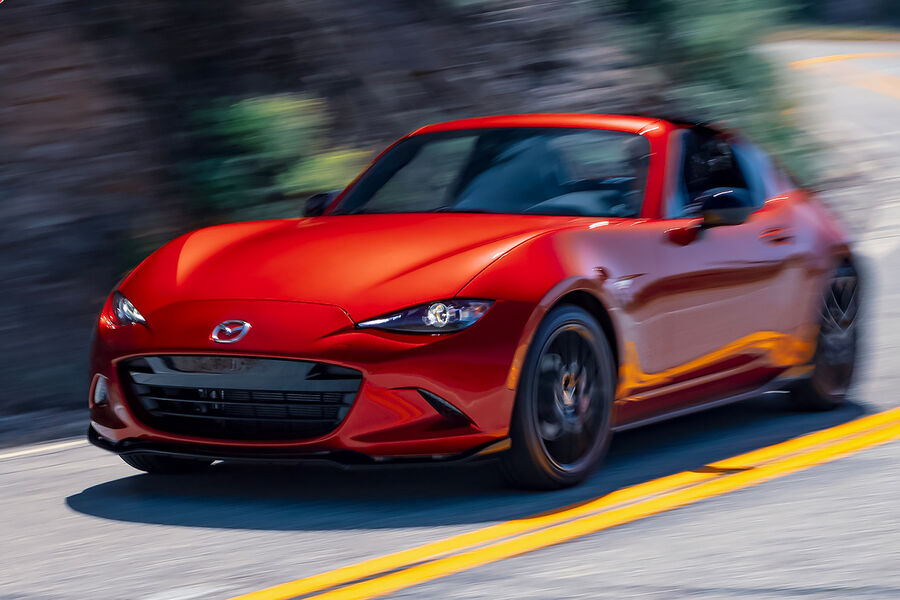 На этом фоне любопытно выглядит подборка доступных «заряженных» автомобилей, составленная по статистике продаж и ценам, которую изучили эксперты topspeed.com. Лидером по минимальному ценнику стал родстер Mazda MX-5 Miata модельного года 2025: за него просят 29,8 тыс. долларов. Машина оснащается двухлитровым двигателем, развивающим 181 л.с. (фото: Mazda)