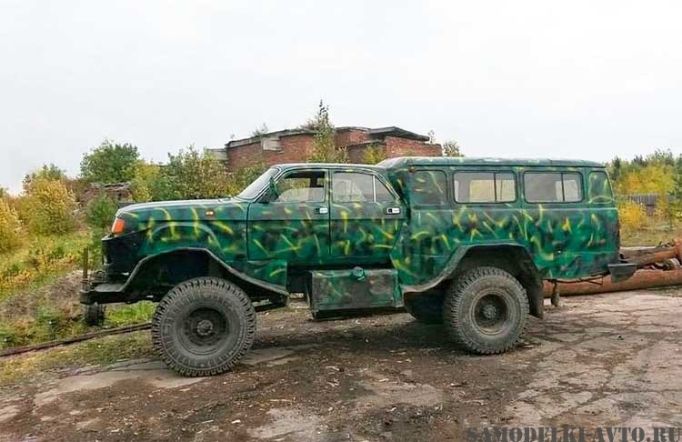 Энтузиаст поставил перед собой задачу не просто восстановить «Шишигу», а создать на ее базе нечто принципиально новое. Для кузова своего авто мастер использовал две совершенно разные части: переднюю от легковой «Волги» и заднюю — от УАЗ-452. Оба кузова были аккуратно распилены, подогнаны и сварены между собой в единую конструкцию. В результате получился цельный кузов со сквозным проходом и большим внутренним пространством.