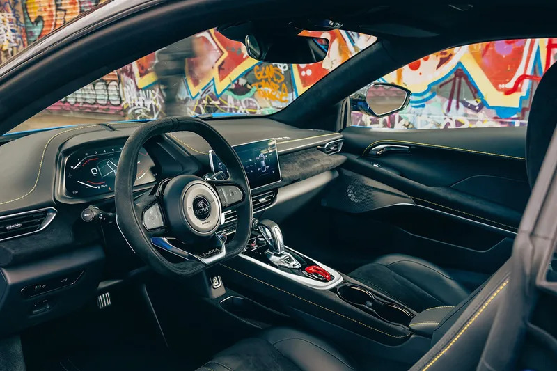 Lotus также предлагает обширный каталог опций настройки двухместного салона. Обивка и приборная панель могут быть выполнены из черной или коричневой кожи, а контрастная строчка может быть красного, серого, черного или желтого цвета. Также можно окрасить в один из этих цветов декоративную деталь туннеля трансмиссии, где находится кнопка запуска и остановки двигателя. Базовая цена на новый Lotus Emira i4 составляет 9,76 млн рублей.