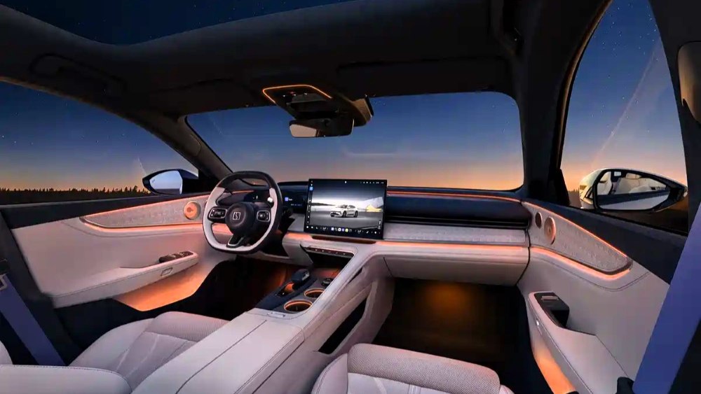 В центре внимания — огромный 16-дюймовый сенсорный дисплей с разрешением 3,5K, который не только впечатляет чёткостью, но и способен поворачиваться на угол до 30 градусов, что позволяет подстроить его под нужды водителя или переднего пассажира. Панель приборов выполнена в виде 13-дюймового цифрового экрана, а для задних пассажиров предусмотрен отдельный 8-дюймовый сенсорный монитор, отвечающий за управление мультимедийными и климатическими функциями второго ряда.