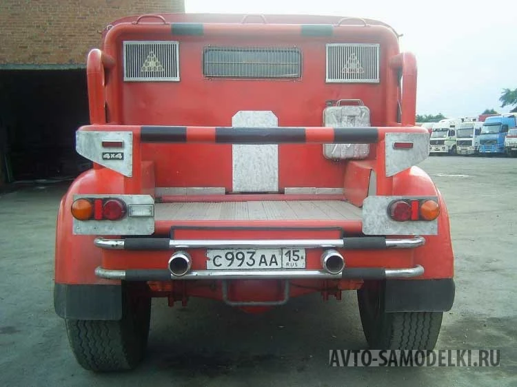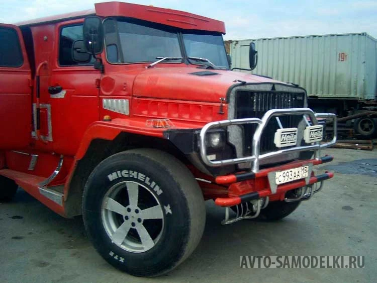 В качестве технической основы мастер выбрал раму от «Шишиги» (ГАЗ-66), сохранив ее «родные» мосты и раздаточную коробку. Это решение обеспечило машине феноменальную проходимость. Однако стандартная кабина ГАЗа не отличалась комфортом, поэтому автор проекта заменил ее на двойную кабину от УРАЛ-375. Чтобы снизить вибрации и смягчить удары при езде по неровностям, конструкция была установлена на специальные плавающие кронштейны.