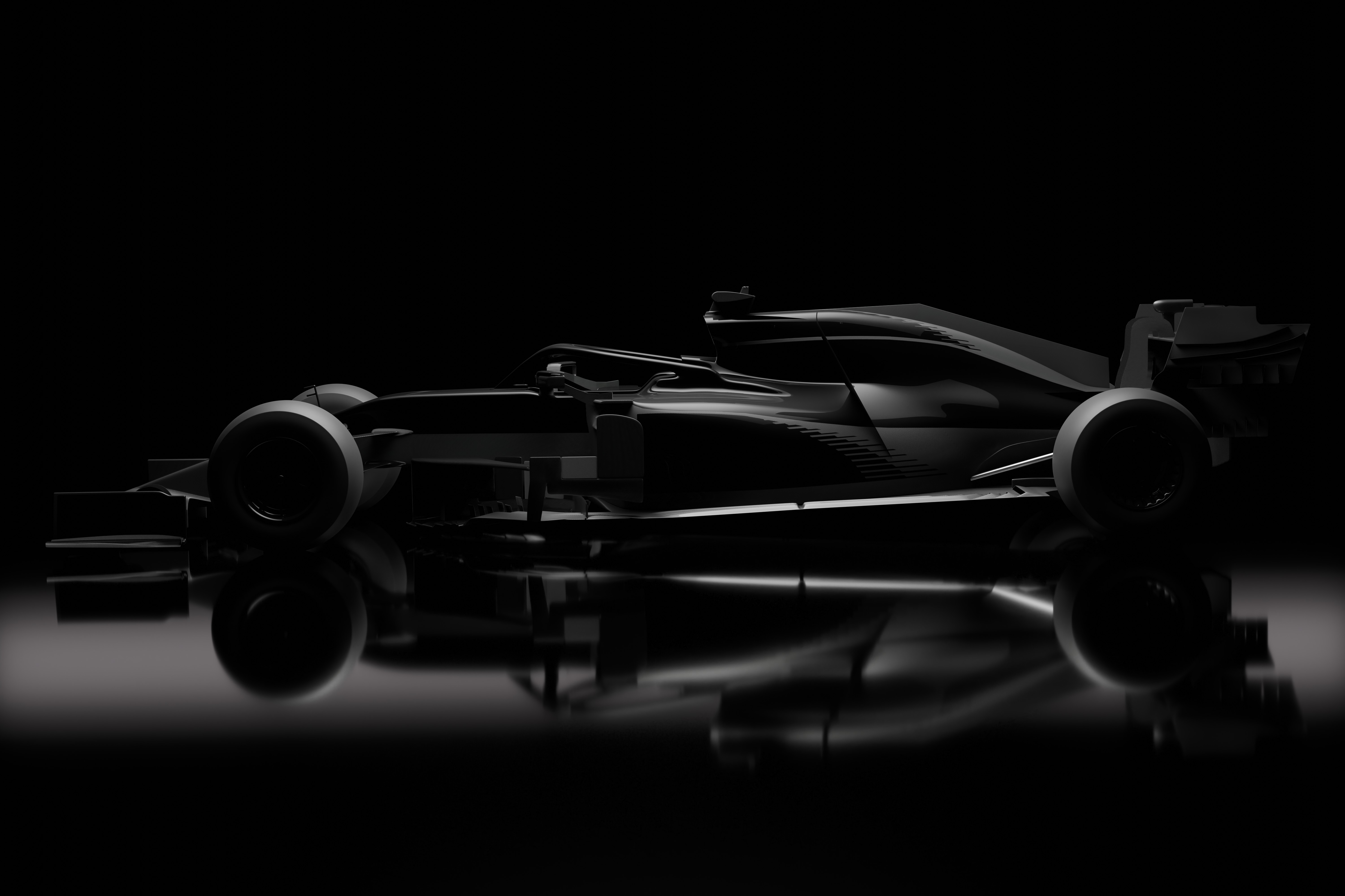 Спереди заметна корректировка креплений: опоры переднего антикрыла более жестко «посажены» на самый кончик носа, хотя общий эффект, который ожидался по рендерам, сохранен.