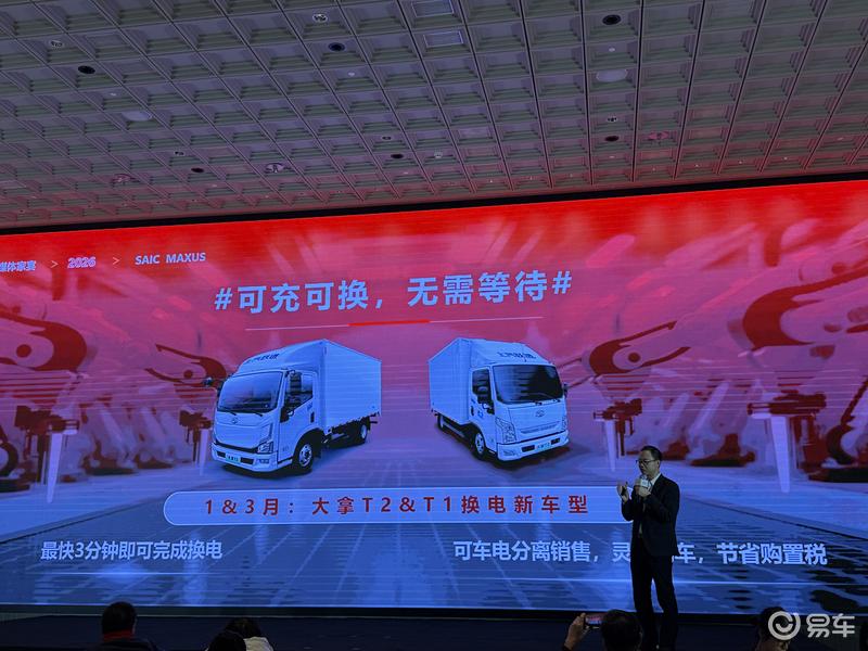 Для легких грузовиков в январе и марте уже подготовлены Dana T2 и Dana T1. Их ключевая особенность — максимально быстрая смена мощности за 3 минуты и гибкая схема, позволяющая выбирать между продажей автомобиля и продажей электроэнергии, снижая затраты пользователей, включая налоговые расходы. Наконец, в MPV-сегменте готовится серьезно обновленный Everyone 9: салон «легкового» уровня от SAIC, ассистенты L2, отдельный компрессор, холодильник с нагревом и охлаждением, подвеска CDC и поддержка режима переключения мощности (фото: news.yiche.com).